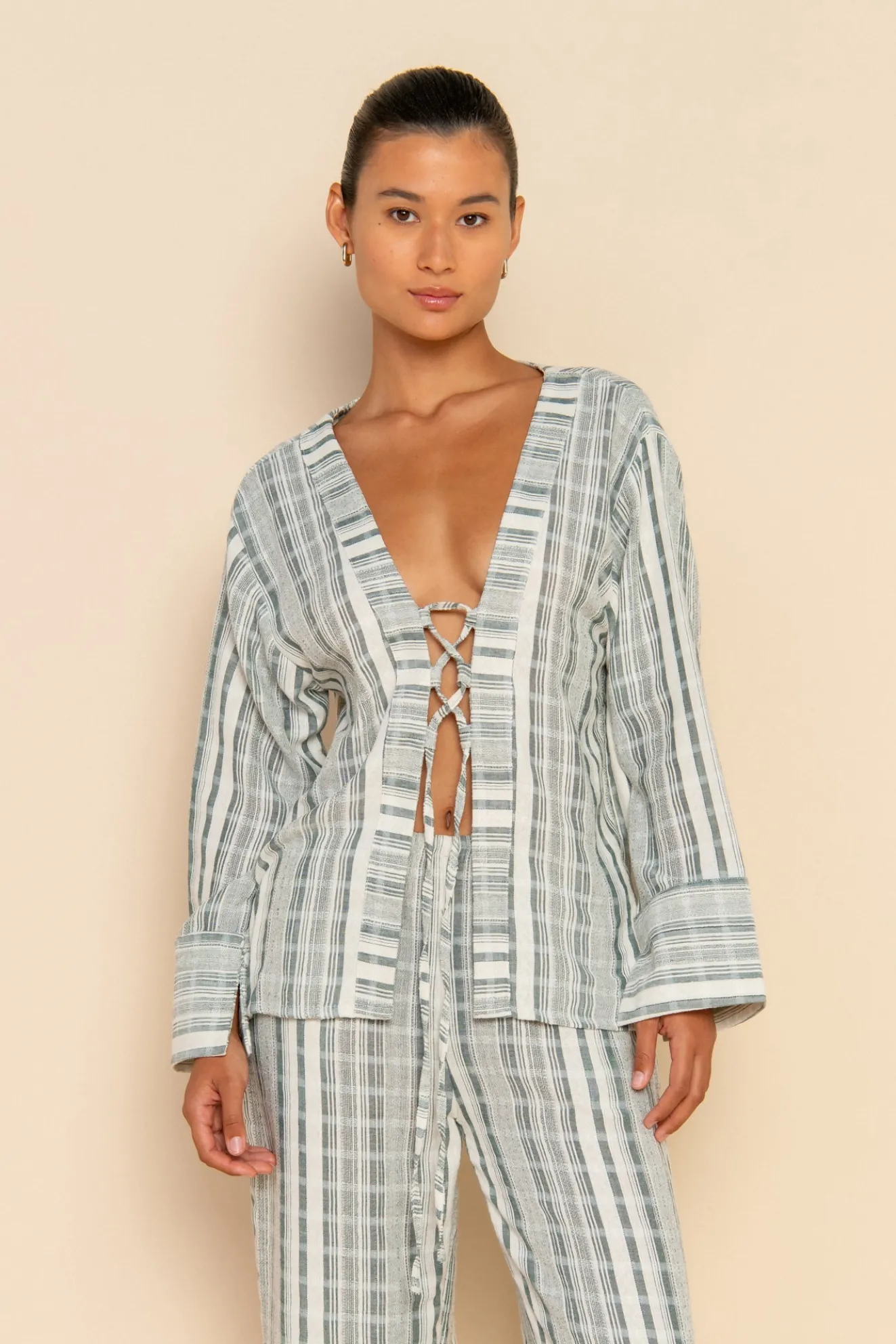 The Emi Shirt has been designed with comfort and style in mind. Featuring a relaxed fitting style and tie front detailing. Pair with the Emi Pant for an elevated look, taking you from beach to bar.