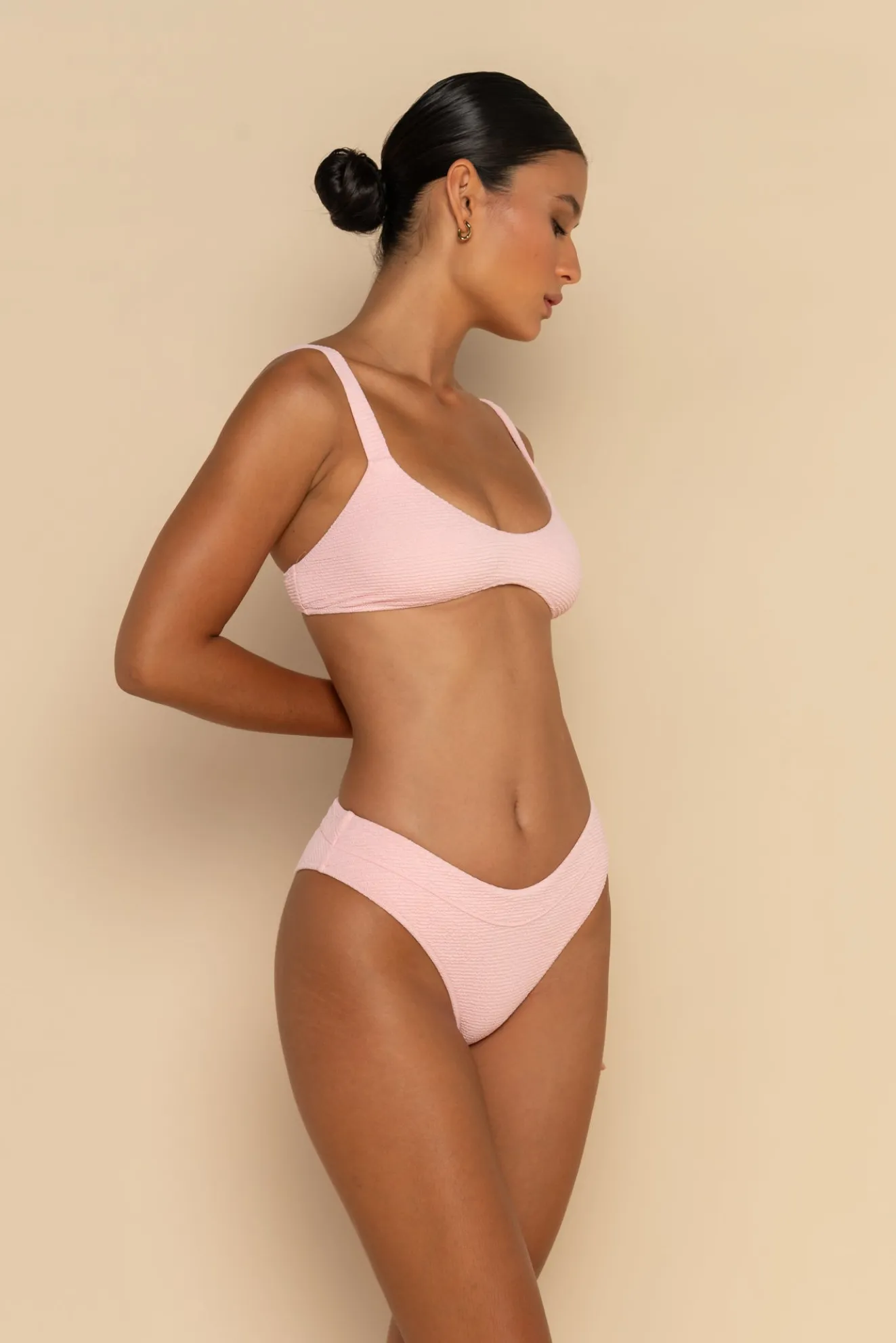 Our Indie Bottom is our mid rise style, offering mid-full coverage with a waistband feature designed to cinch through the waist. Pair with the Mae or Freya Top.